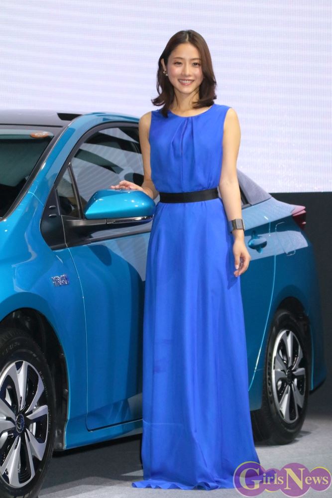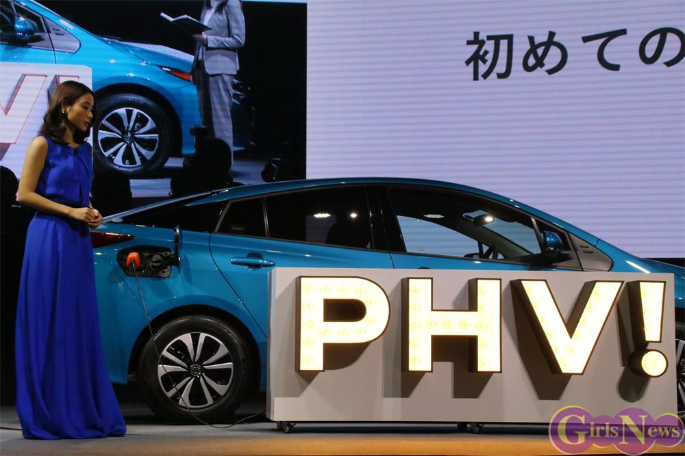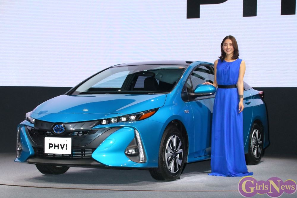 女優の石原さとみさんが、新型「プリウスPHV(プラグインハイブリッド)」のCMキャラクターに起用され、15日に東京・お台場の日本科学未来館で開催された記者発表会にセクシーなドレスで登場した。