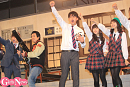 心に闇のある(?)刑事課デスク・小山内美咲役の武田さん、小悪魔的な天然キャラの交通課の新人・三島菜々子役の桜井さんは、鑑識課・山瀬役の伊藤沙莉さんと3人で、劇中、神奈川県警内アイドルユニット「KBD(きびだんご)ホーリーナイト」を結成しているが、この日は伊藤さんが欠席のため、武田さん、桜井さんの二人で“KBD”の曲をかわいい振り付きで披露。歌い終え、今日のパフォーマンスの出来を問われると、武田さんは「75点」、桜井さんは「50点」と同時に笑顔で語った。
