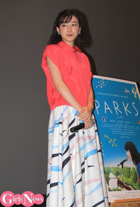 最初に舞台挨拶が行われた『PARKS』は、本日1日、開園100周年を迎えた井の頭恩賜公園を舞台にした映画。舞台挨拶には瀬田なつき監督とともに登壇した。50年前に作られたひとつの曲が引き金となり、1960年代の恋人たちの記憶が、2017年の吉祥寺に生きる若者たちの夢と冒険につながっていく。永野さんは主人公・純(橋本愛)のもとに現れ、亡くなった父の昔の恋人を探す女子高生・ハル役を演じる。