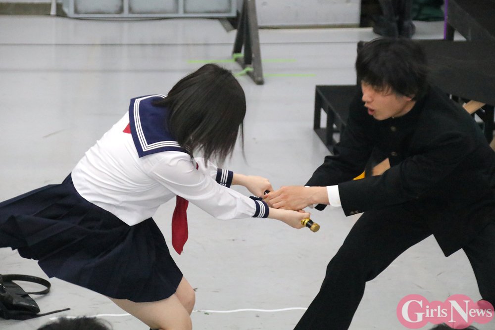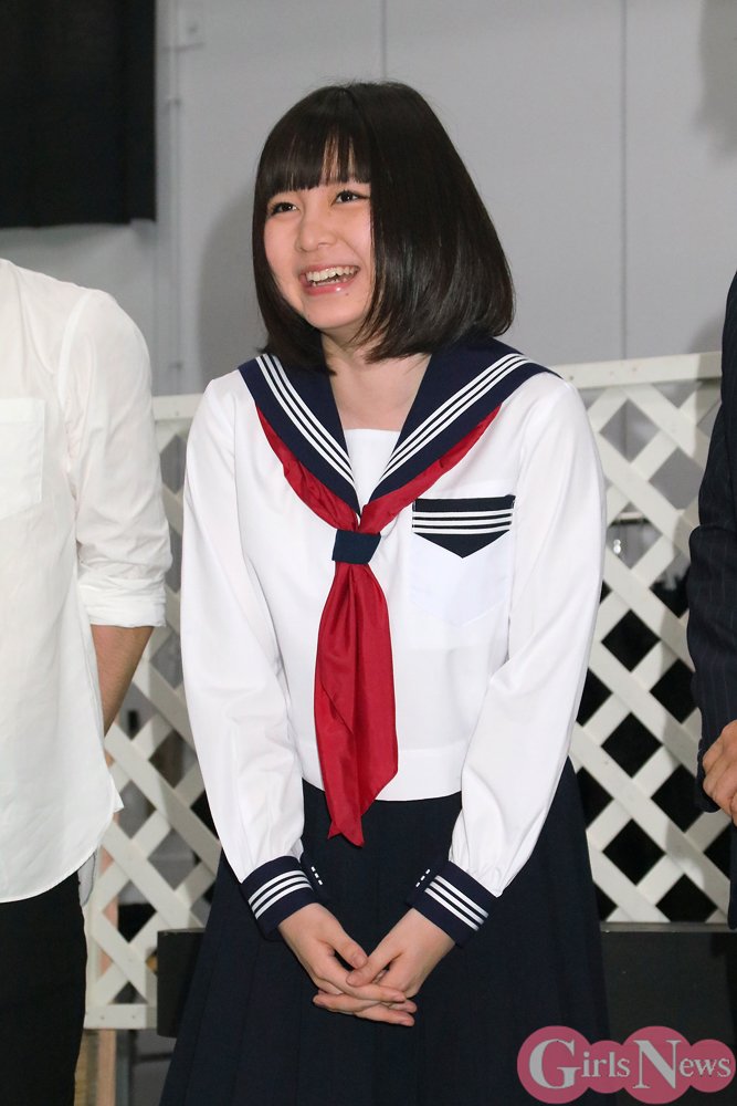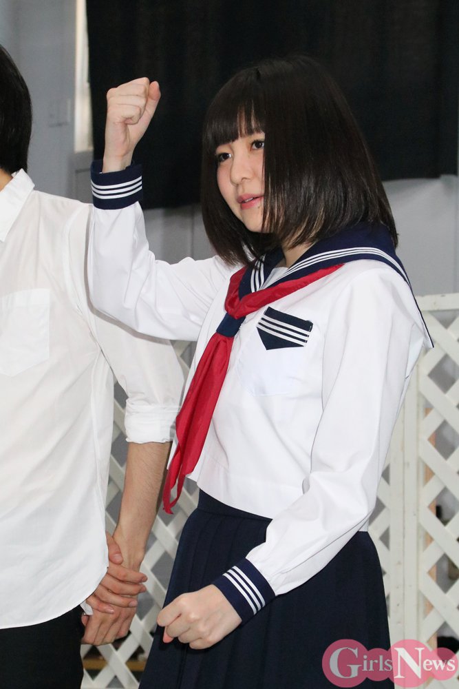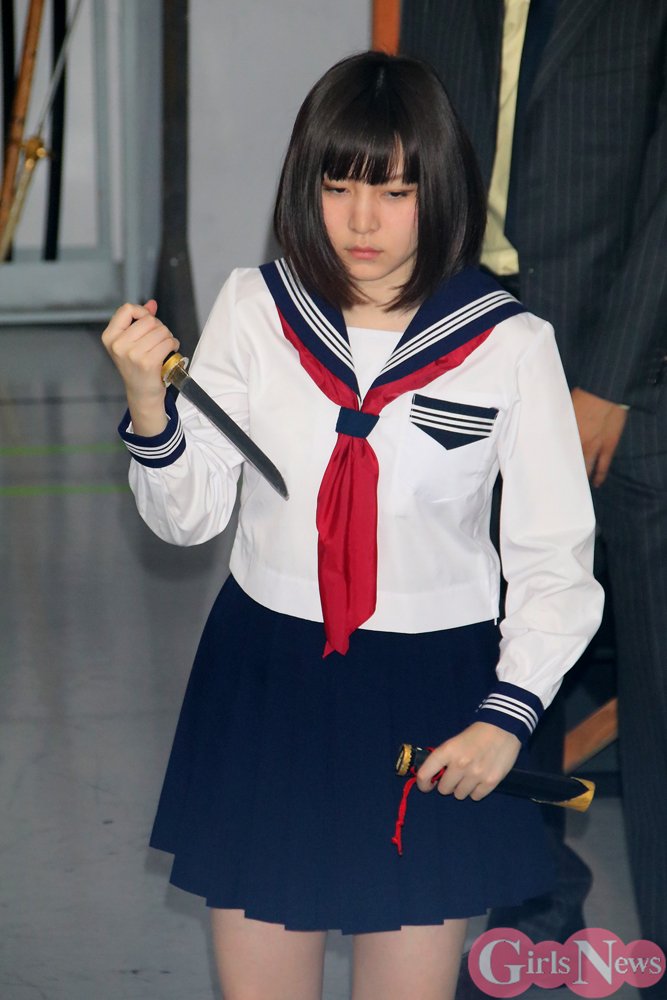 スーツ姿の凛々しい男優たちに混じって、短いスカートのセーラー服で登場した岩田華怜さんは、「現役じゃないのでプレッシャーを感じますが、フレッシュさを出して、みなさんの癒やしポイントにななりたい」と挨拶した。岩田さんは物語のカギを握る重要な役柄だが、「“警視庁抜刀課”と聞いて、オーディションでは“殺陣がやりたかったので立ち回りがとても楽しみです”と言っていたんですが、一切ないんです」と残念がり、「刀を抜くシーンにすべてを掛けて、パンチラしつつ全力で頑張ってます!」と力を込めていた。