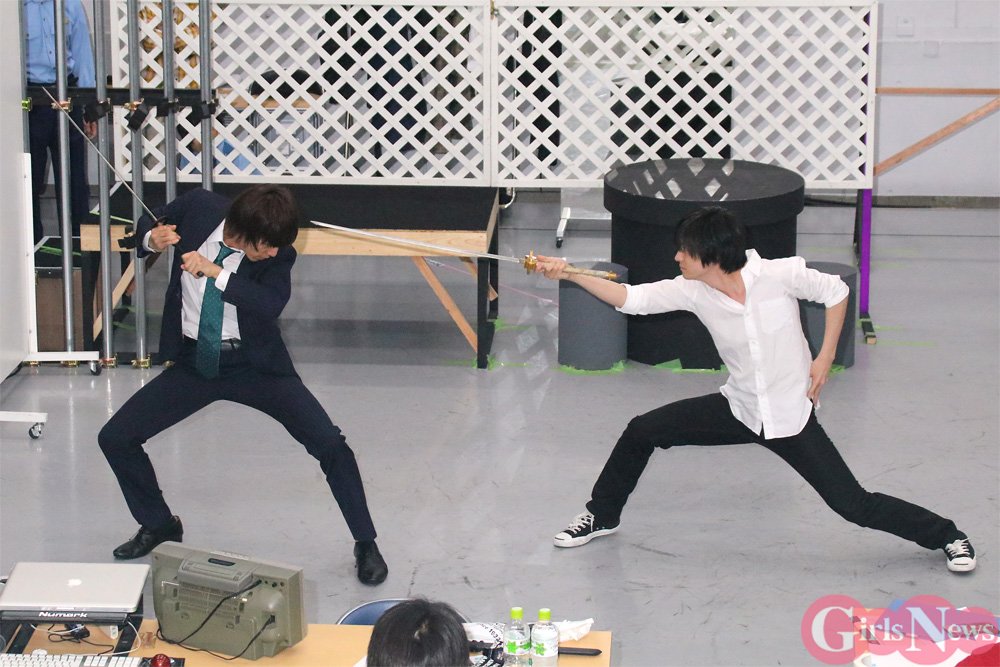 開幕を目前に控えた舞台『警視庁抜刀課』の公開稽古と囲み取材が19日、都内で行われ、中村優一(仮面ライダー電王)や井上正大(仮面ライダーディケイド)、岩田華怜(元AKB48)らが殺陣シーンをはじめとする稽古の様子を披露した。