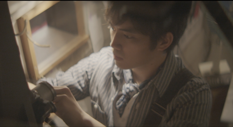 「物文章語(ものふみしょうご)」篇は、映画館「タガタメ座」の中で、 父から受け継いだ映写技師という仕事に真剣に取り組む物文章語(三浦貴大)がメイン。 ポスター貼りをしている誰角真理(武田玲奈)が、その後映画を見て感動している姿を見て、 ふと笑みがこぼれる章語…というストーリー。