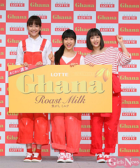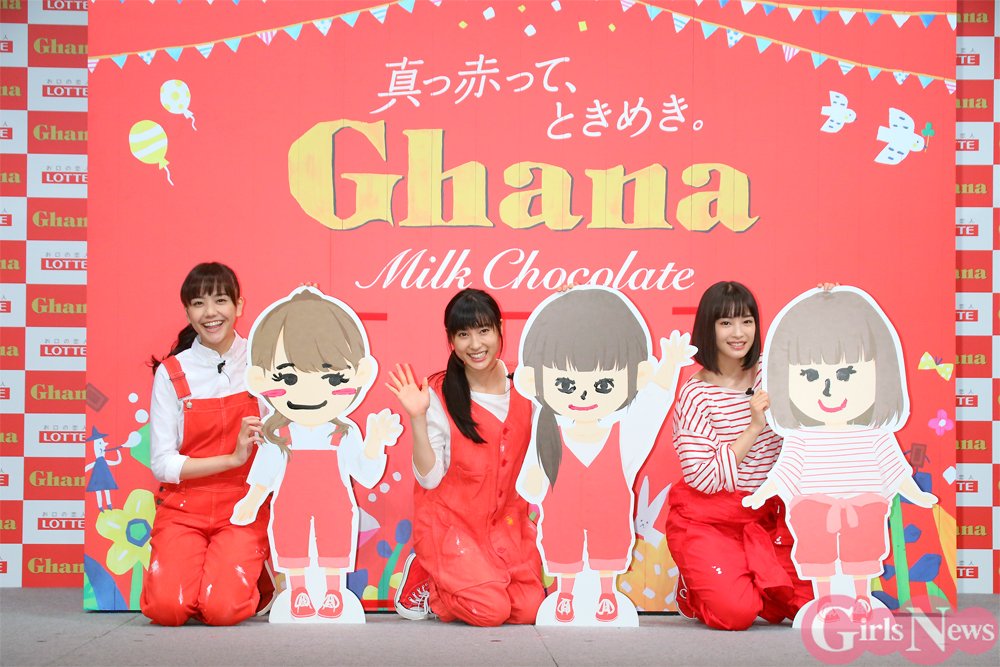 広瀬すず、土屋太鳳、松井愛莉の3人がイメージキャラクターを務めるロッテ・ガーナミルクチョコレートの新CM発表会が11日、東京・有楽町の東京国際フォーラムで行われた。