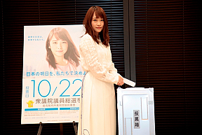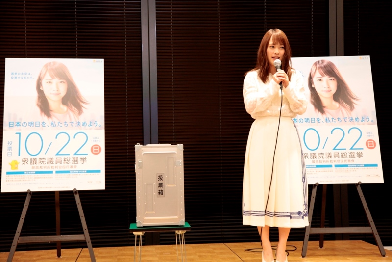 10月22日に投開票が行われる「第48回衆議院議員総選挙」のイメージキャラクターを務めている女優・川栄李奈さん。12日には都内にて実施された期日前投票デモンストレーションの記者発表会に登壇した。