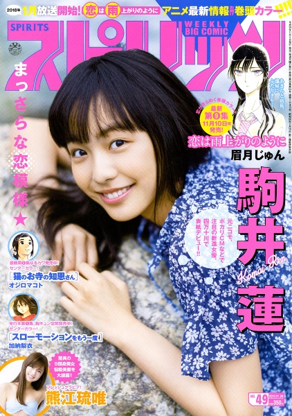 新人女優・駒井蓮さんが発売中の「週刊ビッグコミックスピリッツ」の表紙 & 巻頭グラビアに登場、フレッシュな姿を見せている。