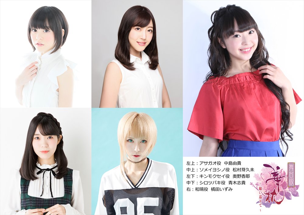 本公演のメインキャスト4人には、TVアニメ『遊☆戯☆王VRAINS』財前葵/ブルーエンジェル役などで活躍中の中島由貴(アサガオ役)、元NMB48の松村芽久未(ソメイヨシノ役)、声優ユニット「Wake Up, Girls!」の副リーダーとして活躍する奥野香耶(キンモクセイ役)、『アイドルマスターシンデレラガールズ』二宮飛鳥役で人気を集めた青木志貴(シロツバキ役)がキャスティングされた。さらに、アサガオたちを異界の遊郭「華壇」へと導くキーキャラクター和璃役には、今作が初舞台となる声優の橘田いずみが演じる。