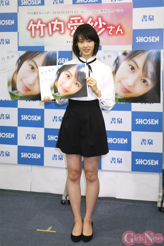 『Y!mobile』のCMや、ドラマ『明日の約束』の出演で注目されている女優の竹内愛紗さんが4日、神田神保町の書泉グランデで開催された「竹内愛紗カレンダー2018.04-2019.03」(東京ニュース社刊)の発売記念イベントに出席した。