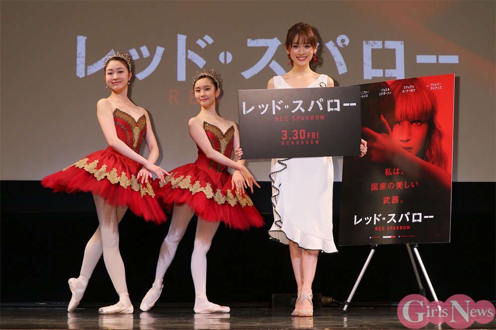 今年1月から3月までフジテレビ系で放送されたドラマ『海月姫』では、仕事を取るためには枕営業も厭わない欲深き野心家・稲荷翔子役を熱演して好評を博した泉里香さん。この日のイベントでは『レッド・スパロー』の主人公で元バレリーナの女スパイ・ドミニカ(ジェニファー・ローレンス)に並ぶセクシーな衣装で登場した。