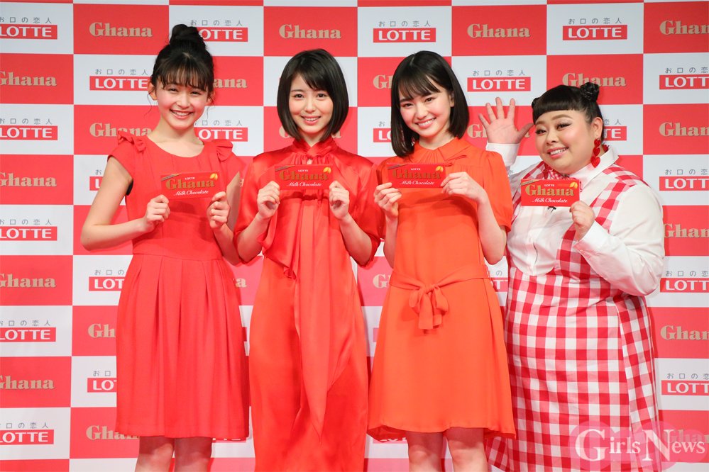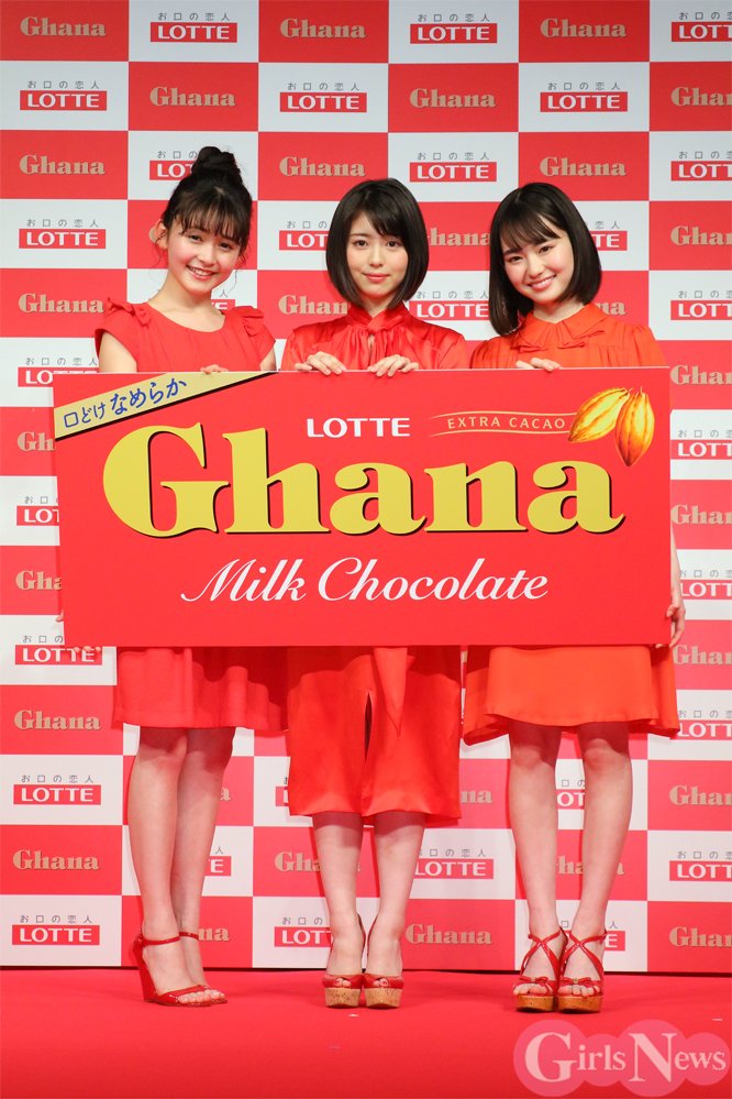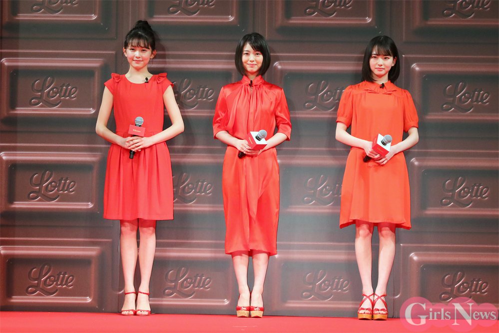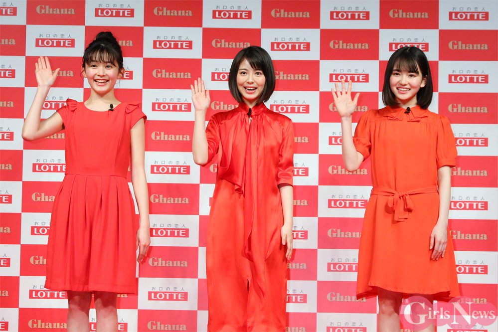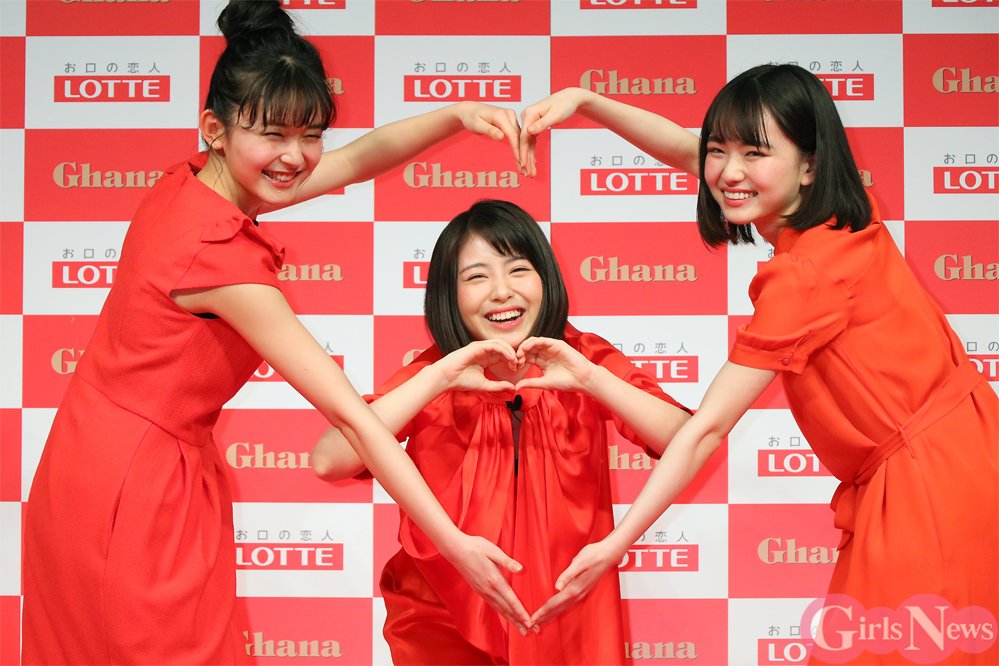女優などで活躍中の浜辺美波、山田杏奈、久間田琳加の3人が、5日に都内で行われたロッテ「ガーナミルクチョコレート」新CMキャラクター就任イベントに出席した。