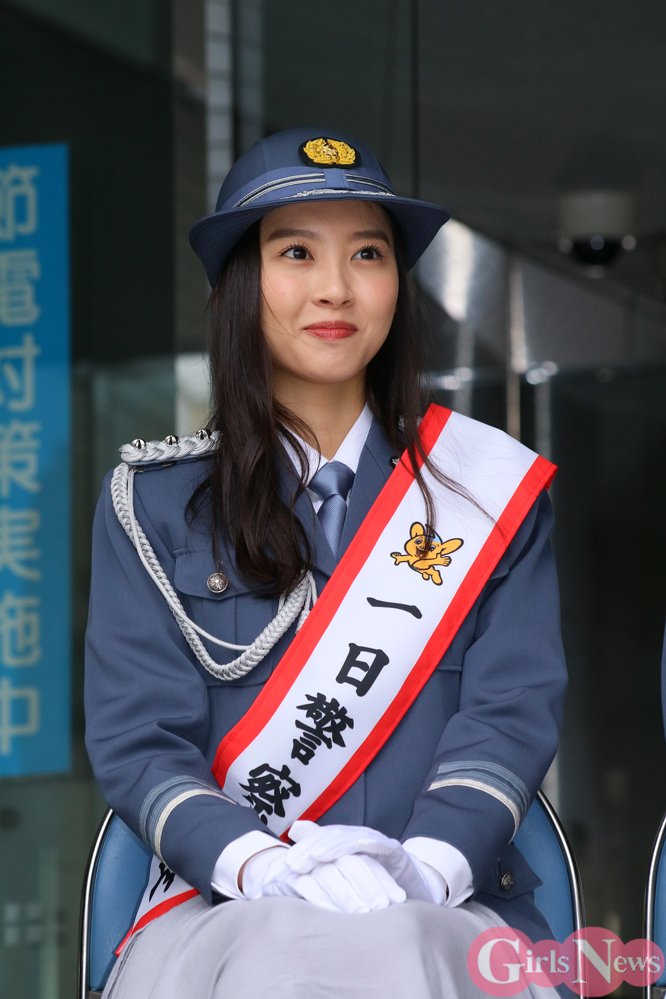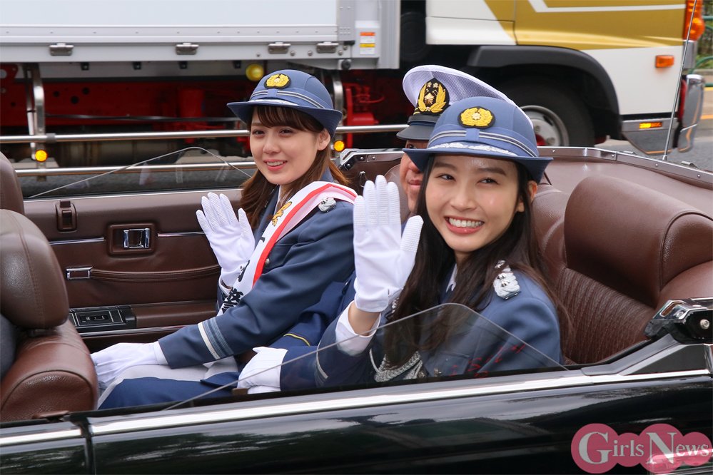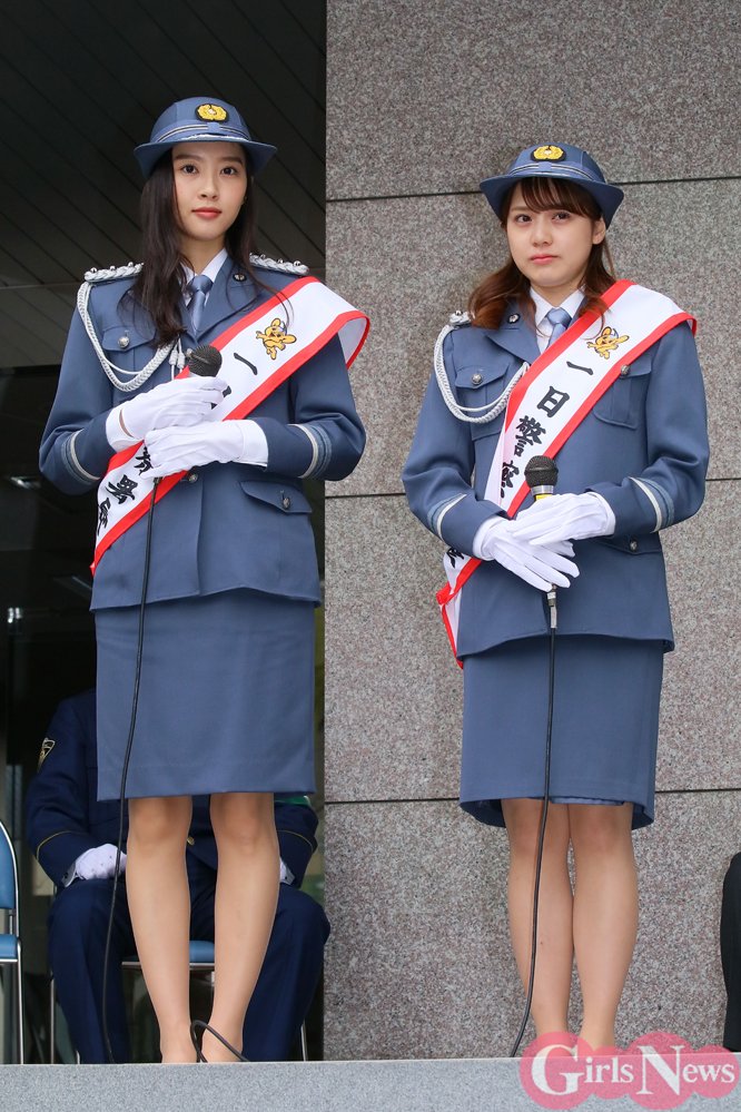 女優の奥仲麻琴さんと山下永夏さんが7日、江戸川区区役所前で行なわれた「春の全国交通安全運動」のイベントに出席し、警視庁小松川警察署の「一日警察署長」に就任した。