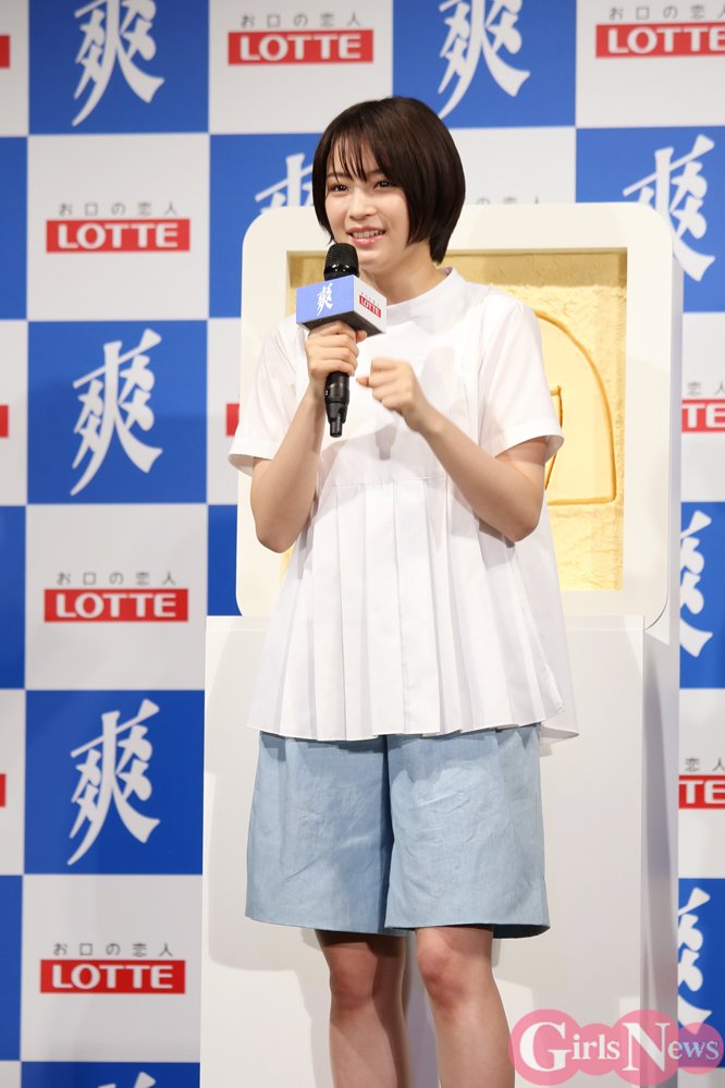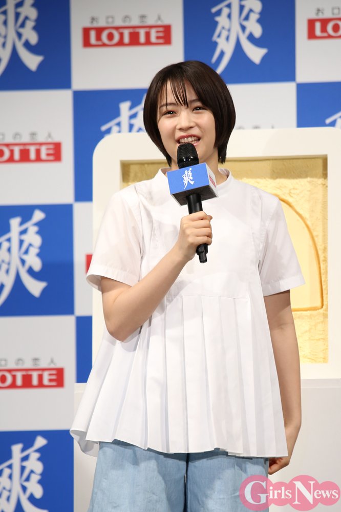 ロッテ『爽』新CMに出演の広瀬すずさんが、12日に行なわれた記者発表会に出席した。