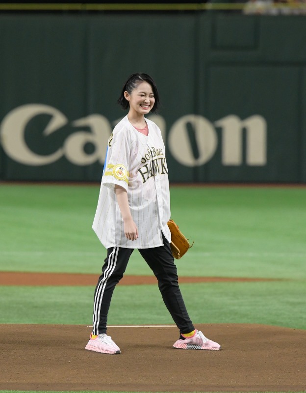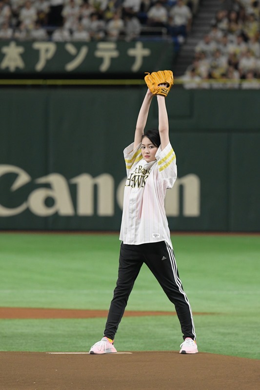 女優の吉本実憂さんが10日、東京ドームにて行われた福岡ソフトバンクホークスVS北海道日本ハムファイターズ戦の始球式に登板した。