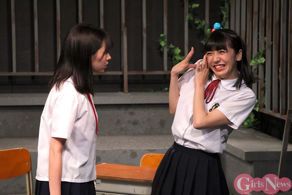 本番前に行なわれたゲネプロが関係者らに公開され、主演の女子高生・墨尾優を演じる遠藤瑠香さんと、優と漫才コンビを組む相方役の石川凜果さん、紅島弓矢役の栗生みなさんが、取材陣に意気込みをアピールした。