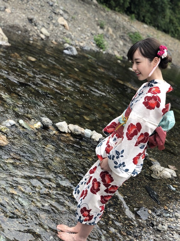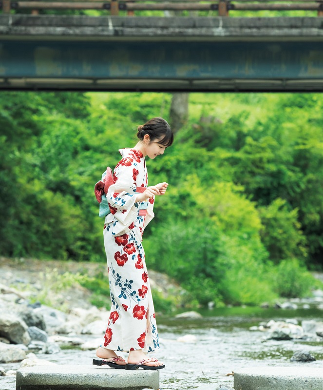 今回のグラビアでは、しっとりとした浴衣姿の水辺での写真は酷暑も爽やかにしてくれような清涼感に溢れる。誌面では魚釣りにも元気に挑戦しており、高校2年生の夏休みを満喫している様子を見せている。