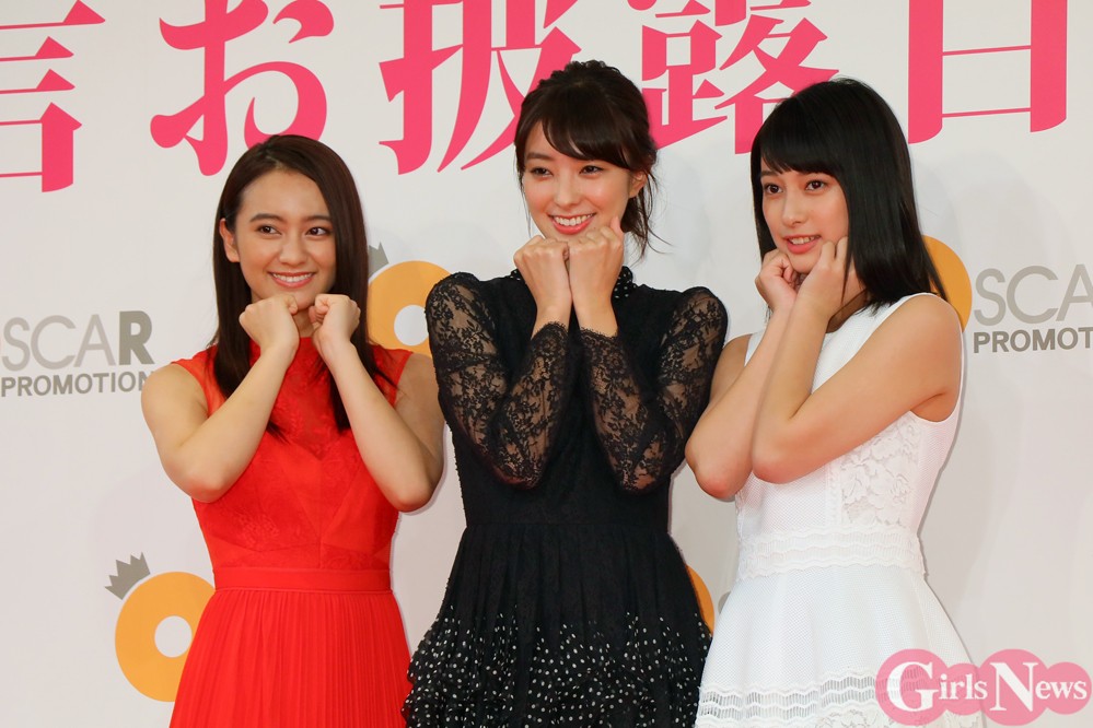 米倉涼子や上戸彩らを輩出する芸能事務所・オスカープロモーションに所属するタレントの岡田結実・宮本茉由・玉田志織が12日、都内で開催された「女優宣言お披露目発表会」に登壇した。
