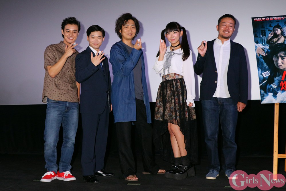 映画『ノーマーク爆牌党』が27日より公開され、主演の石田明(NON STYLE)、矢本悠馬、ヒロイン役・長澤茉里奈らが、新宿シネマート1で行われた舞台あいさつに登壇した。