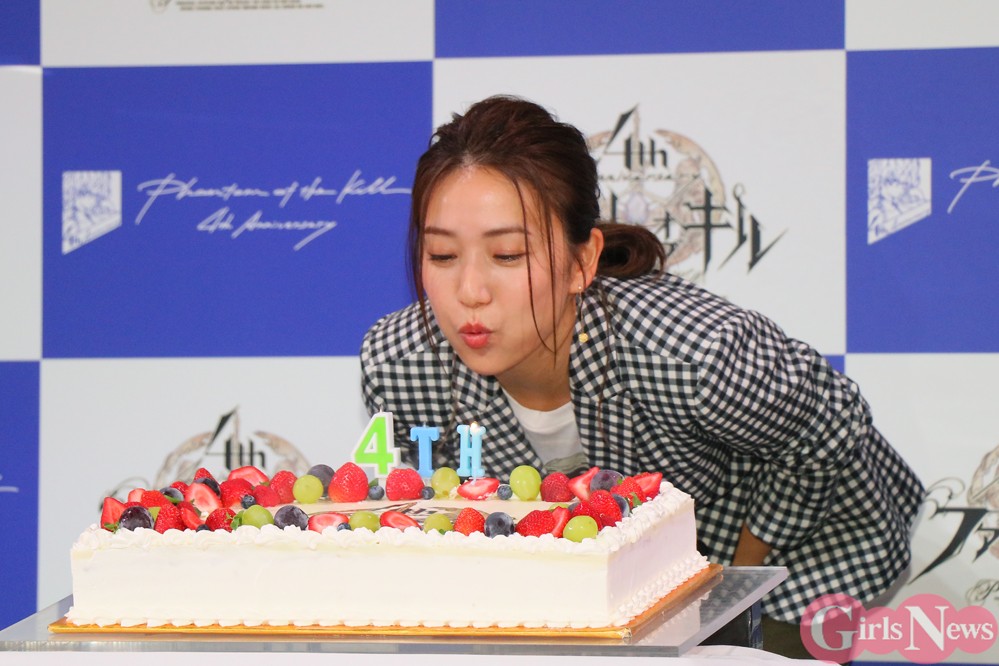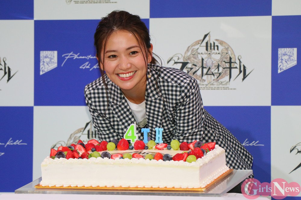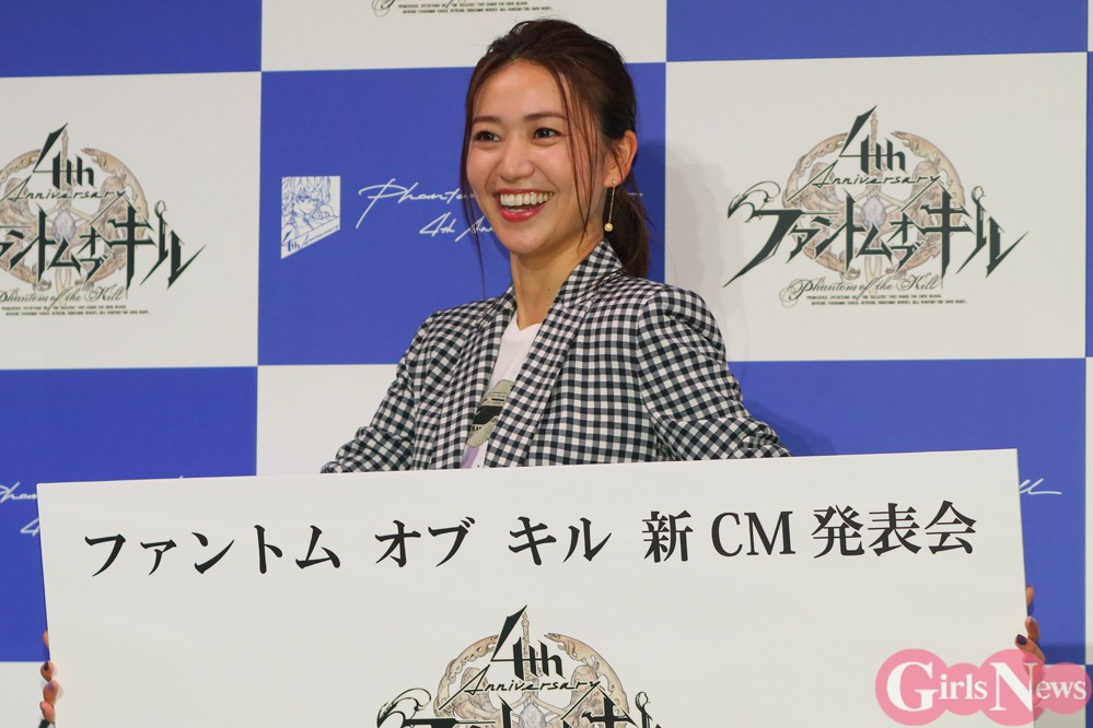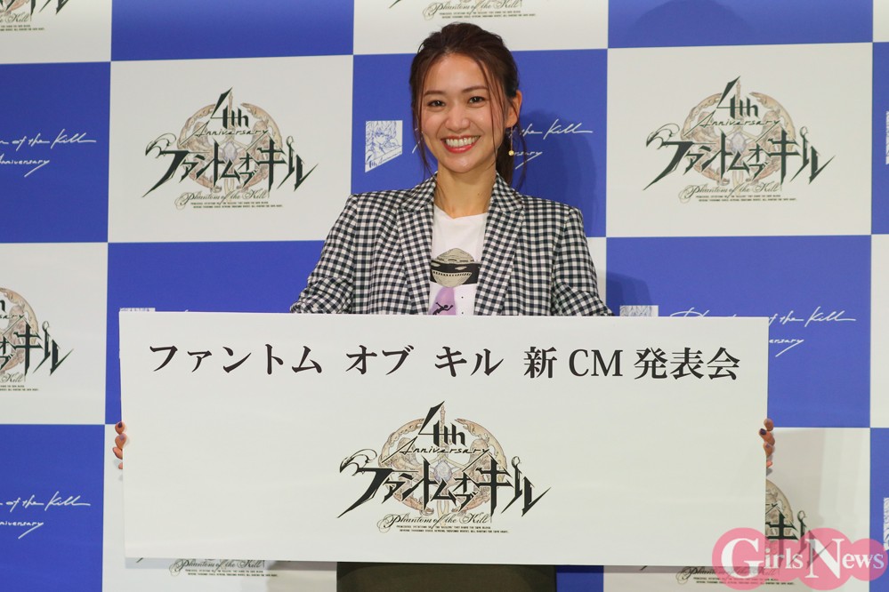 女優の大島優子さんが 8日、都内で行われた人気RPGゲームアプリ『ファントム オブ キル』の4周年を記念する新CM発表会に出席した。