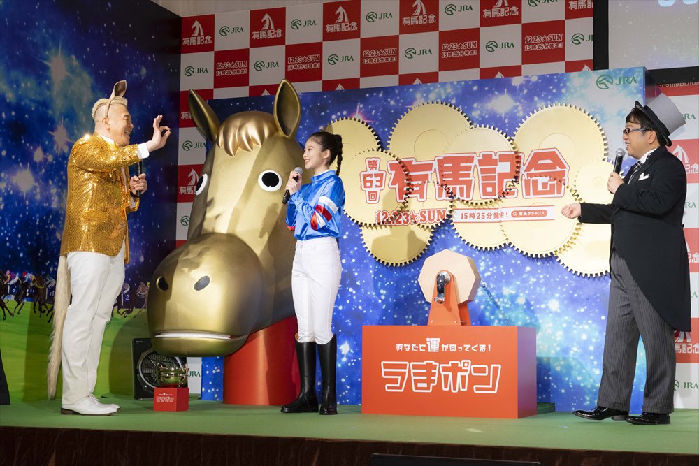 JRAのGⅠレース「第63回有馬記念」(23日・中山競馬場にて)のPRイベントが17日、“福岡で一番かわいい”と評され人気の今田美桜さんと、キャイ~ンをゲストに迎えて実施された。