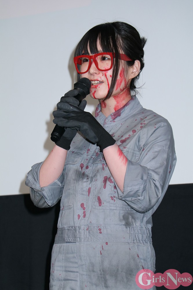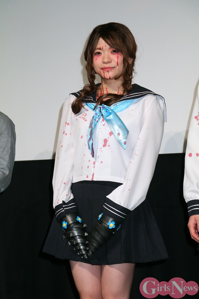 自前のチェーンソーを持ち歩く女子高生・鋸村ギーコを演じた浅川さんは、本作にセーラー服に下駄と“フンドシ”という姿で登場するが、前日12日にはフンドシの普及に貢献した著名人に贈られる「ベストフンドシスト2018」にも選ばれている。
