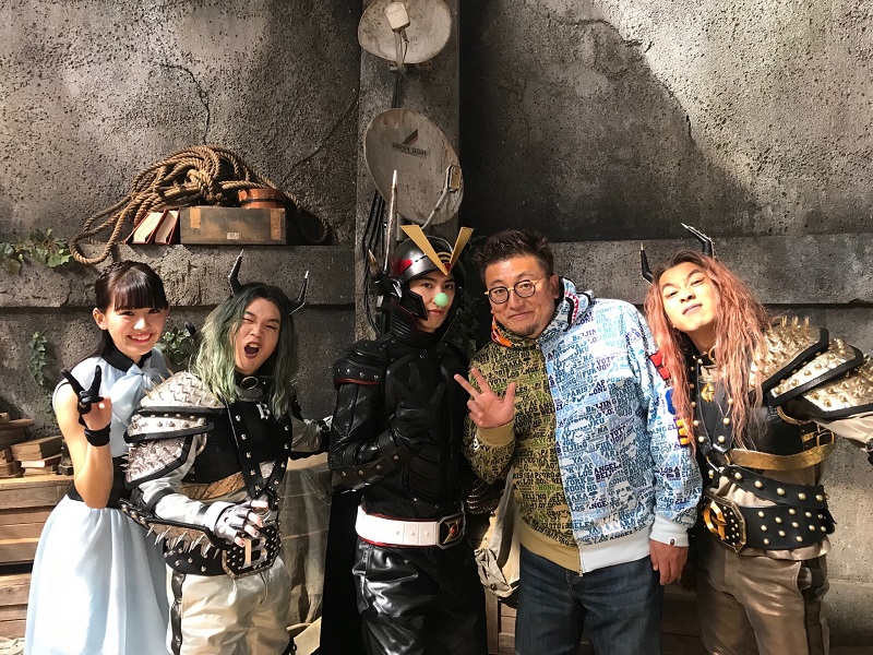記念ショットでは、独特な世界観のセットの中で、作風が全く想像できない風貌の今日俺チームと並んで、浅川さんは青色のドレスに身を包みながら、憧れの福田組での撮影に喜びを隠せないと言わんばかりの笑顔で写っている。