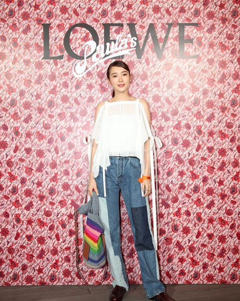 2件目に訪れたのは人気ブランド「ロエベ(LOEWE)」のS/Sコレクションレセプション。肩出しの白いトップスに、デザインデニムという洗練されたコーディネートで出席し、「トキメクお洋服と会場でした」とコメント。