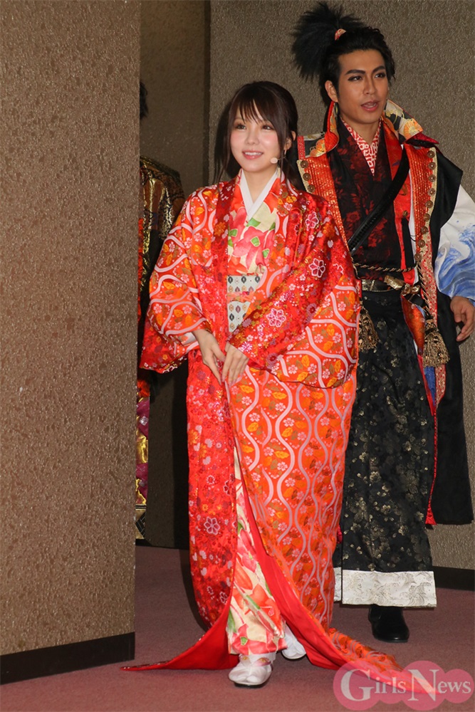 信長の妹で戦国一の美女と伝えられてるお市役の田中れいなは「 お市は、 前作まではあまり感情を表に出さない演技を心がけていたのですが 、今回は兄との兄妹愛を感じるシーンがあります。 ぜひ注目して欲しい」と見どころを紹介。 さらに劇中で歌を披露している田中さんは「新曲です!アニメの主題歌っぽい、かっこいい曲だなと 思いました。 私の歌の間にほかの役者さんがセリフなしの無声芝居をしているんで すけれど、今回はただ歌ってるだけじゃなくて、 少しだけ私も他の方に混ざっていて、 ミュージカルっぽくなっています」とアピールした。