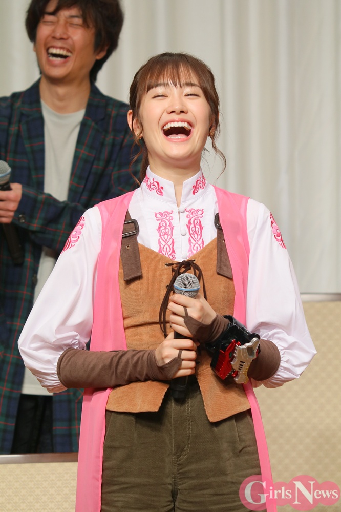 また、6500万年前のリュウソウ族の娘・ユノを演じる北原里英さんは、初めてのスーパー戦隊シリーズへの出演に「小さいときからずっと憧れで、今は大きなお友達たちとなった大人たちも誰もが通ってきた道である作品に自分も関われて嬉しい」と喜んだ。父親役の佐野史郎さんに「ほかのドラマでも親子を演じていて、ホントに信頼できるお父さんとして演じさせていただきました」と話した。