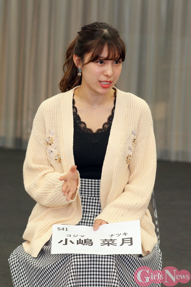 GirlsNewsでは特別に二次審査の模様を取材、十人十色の候補者の中でも、ひときわタレントとしてのオーラを感じたのは、昨年AKB48を卒業した小嶋菜月さん。8年間アイドルとして過ごし、バラエティ番組の出演も多いだけに審査員を前にしても固くならず表情も余裕が見えた。