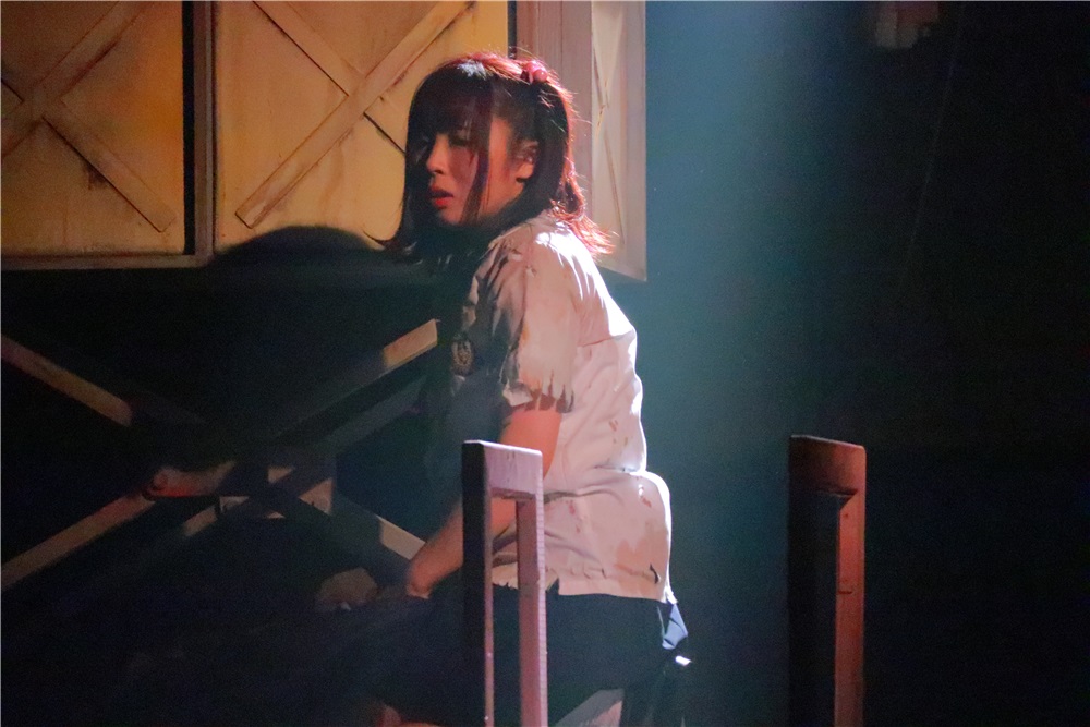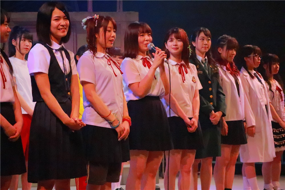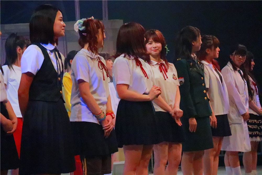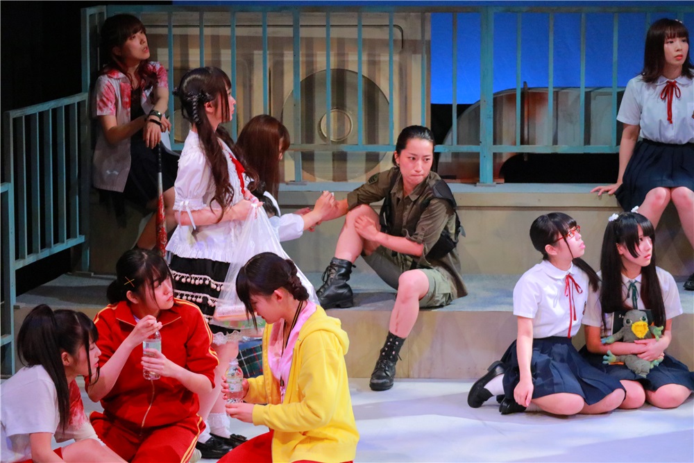 同じくダブル主演の墨尾優役・青木里菜(Re:Clash)は「屋上の上で生き延びようとする、女の子たちの必死な気持ちや姿をみなさんに公演期間中たくさんたくさん届けて、心に何かグッと残るものがあればいいなと思いながら、残りの日も最後まで全力で頑張りたいと思います。よろしくお願いします。」と抱負を述べた。