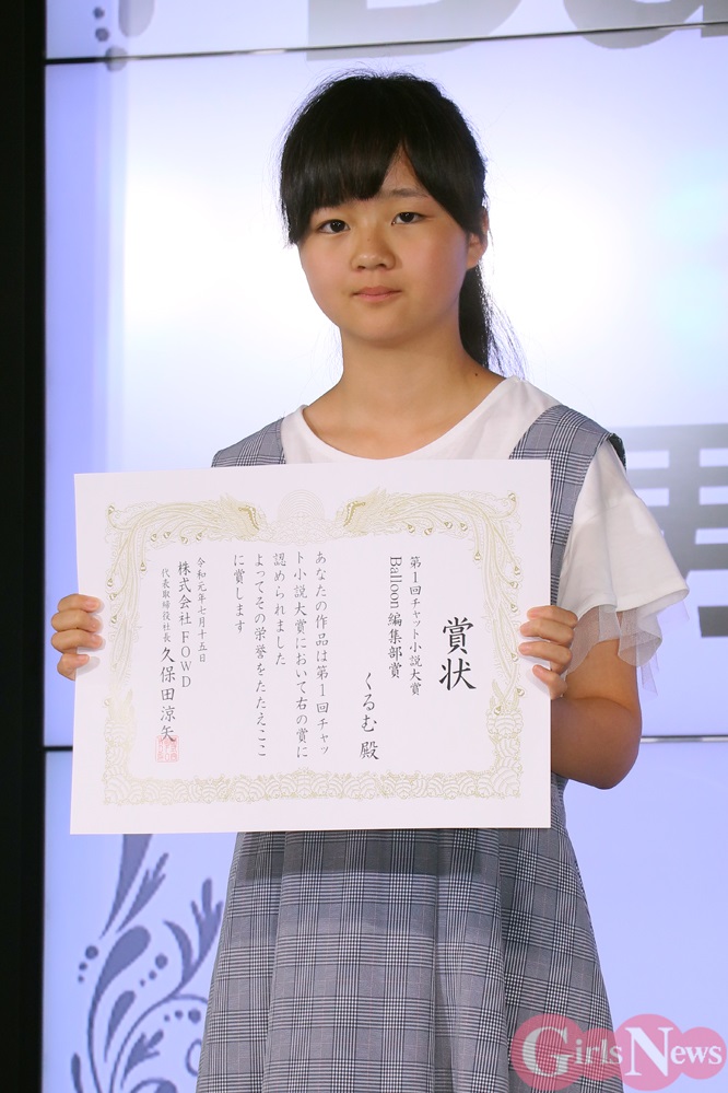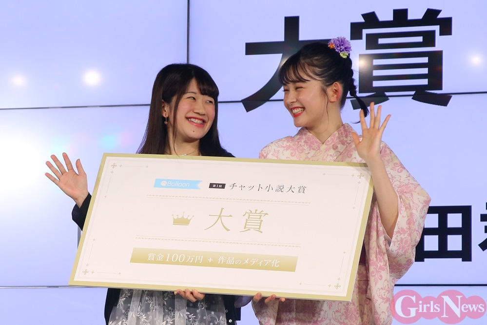 本イベントは、10代を中心に人気のチャット小説アプリ「Balloon」にて“日本初”となる大賞を決定するもの。応募総数385作品の中から、大賞に23歳の会社員・春ルナさんが選ばれたほか、優秀賞に高校3年生の実さん、Balloon編集部賞に中学2年生のくるむさんが決定した。