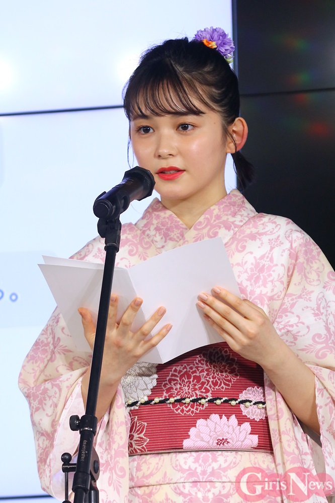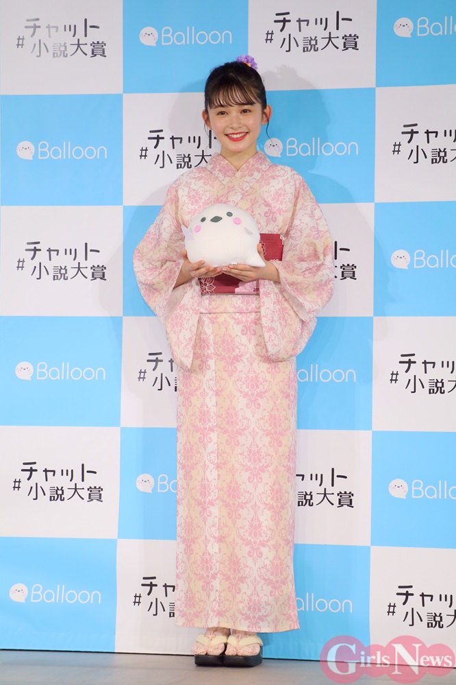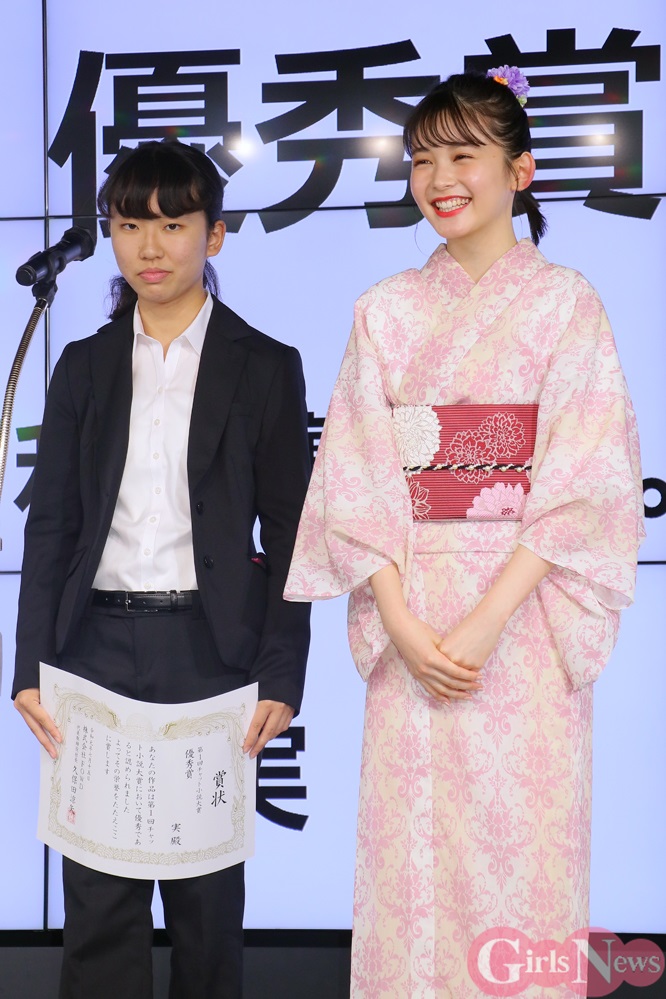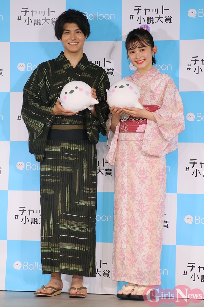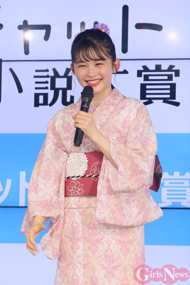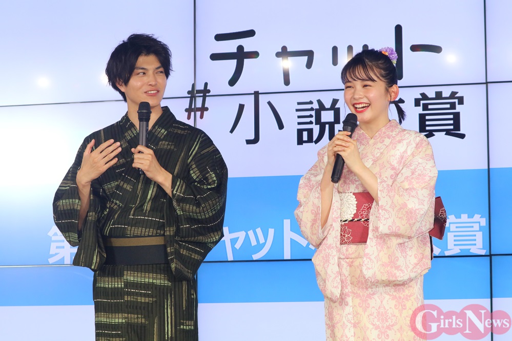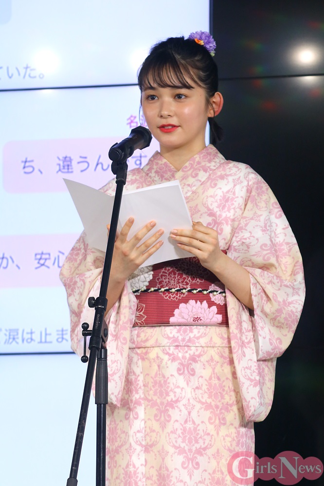 昨年12月の募集開始から特別審査員として同賞のPRにも努めてきた久間田さんは、「海の日」にちなんで夏らしい浴衣姿で登場。「向かいのバズる家族」(日本テレビ系)でテレビドラマ初出演を果たした俳優の那智さんとともに大賞作品『隣の席の江田君は』の朗読を披露した。