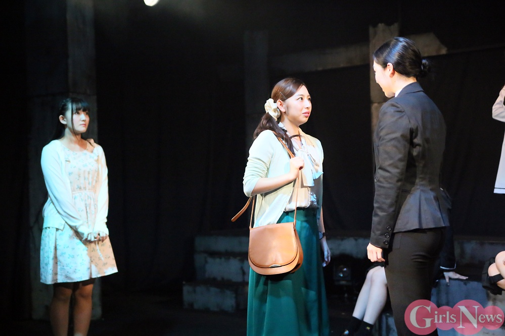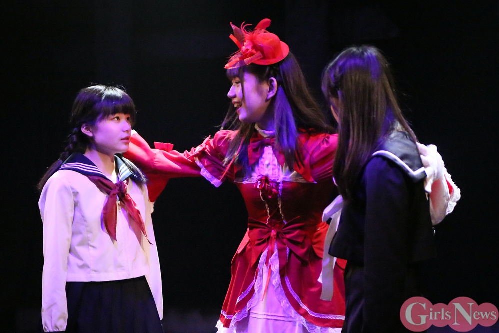 里於奈さん(浅倉神酒役)は、「稽古では観客がいないので、実際に舞台に立ってみないと判らないことがたくさんありました。初日を迎えて、ここで笑いが起こるんだとか、こういう反応をするんだとか知ることが出来て、演じていてテンションが上がりました。これからの公演の中でみんながドンドン成長していくんだろうなと、すごく楽しみになりました。もっともっと上に上がっていけるんじゃないかと思います。ドナーのみんなは稽古でアドバイスしたり、LINEグループでも相談したり、演技に対して高め合っていて、家に泊まりに行ったり、私生活でも仲がいいです。舞台ではツンデレの集まりですけど、私はミキみたいに強がって1人ではいられない性格なので、そのギャップもファンの方には楽しんでもらえるポイントだと思います」