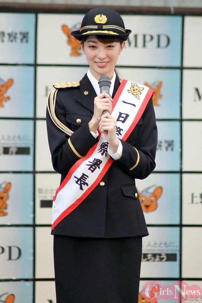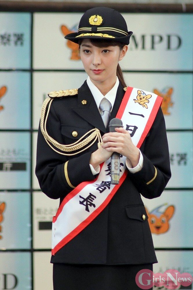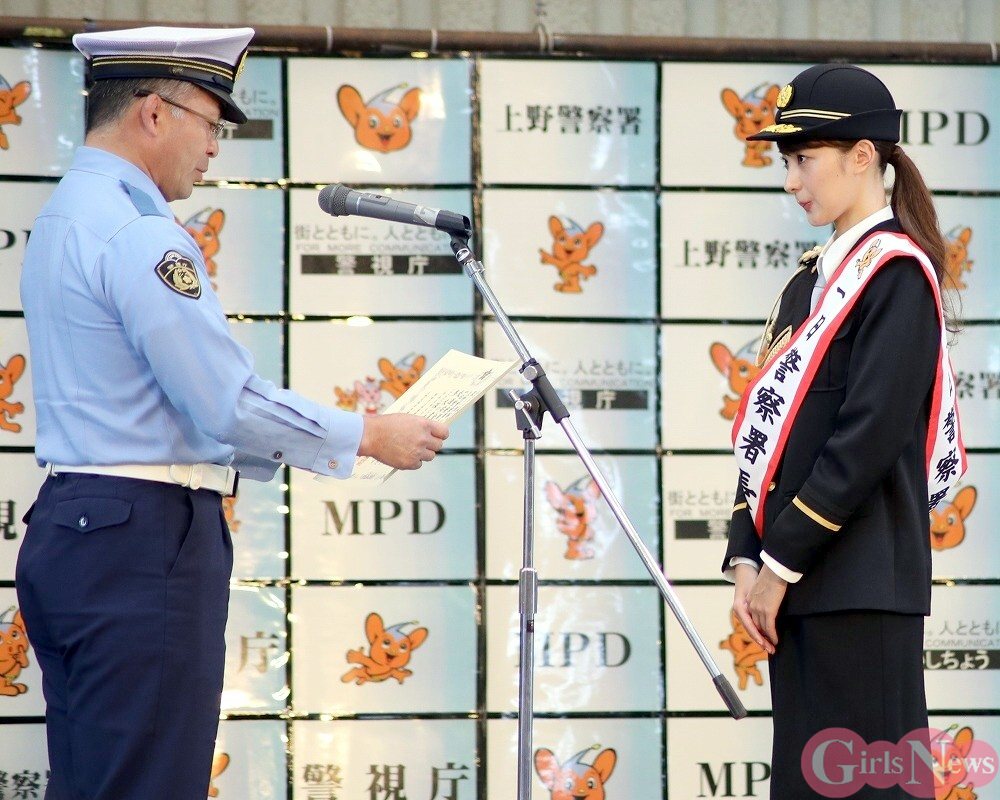 女優の宮本茉由さんが22日、上野恩賜公園内の野外ステージで行われた「秋の全国交通安全運動行事 上野警察署交通安全教室」にて上野警察署の1日警察署長を務めた。