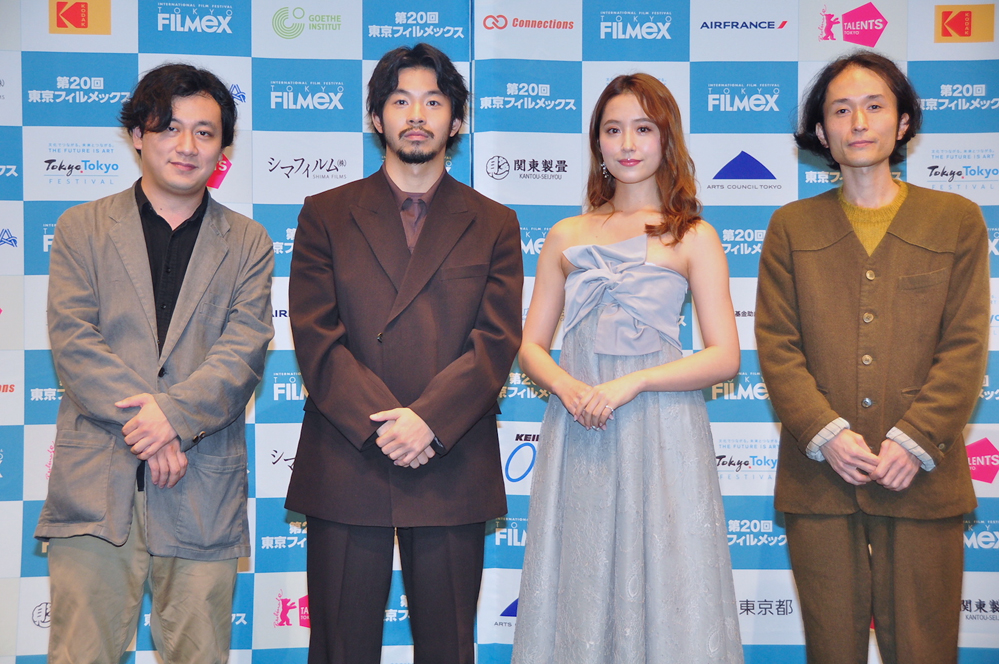 第20回東京フィルメックスに選出された映画『静かな雨』が24日、東京・有楽町朝日ホールにて上映され、上映前にW主演の仲野太賀と衛藤美彩、音楽を担当した高木正勝、中川龍太郎監督が舞台挨拶に登壇した。