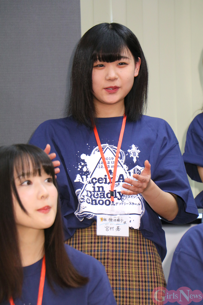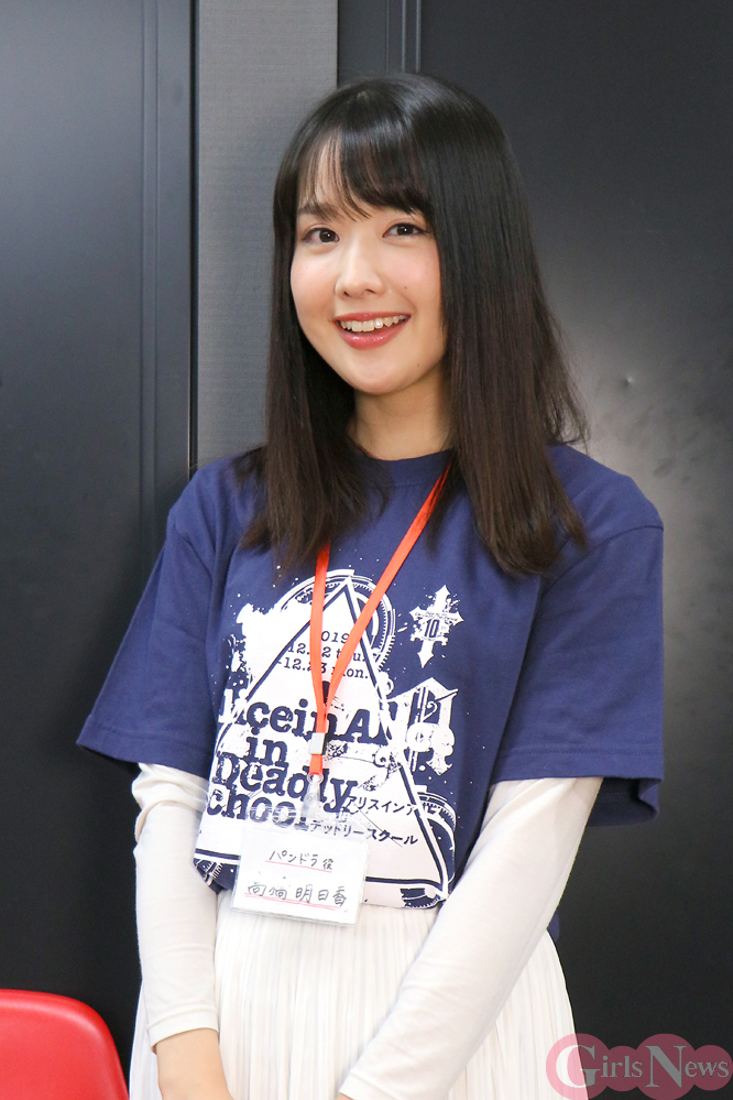 高橋明日香(パンドラ)「初めてアリスインアリスの世界観でデッドリースクールを描くという試みなので、アリスインアリスとてして頑張りたいと思います。アリスインアリスのライブでやっていた世界観を私たちが体現して、曲も使われているので、以前のライブを見てくれていた人たちはエモくて思わず唸るんじゃないかと思います」