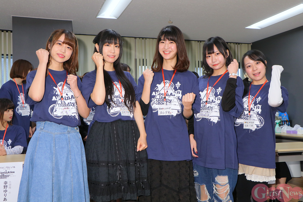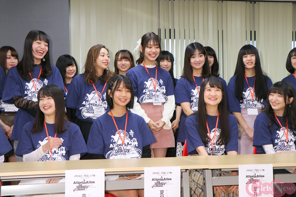 ガールズ演劇プロジェクトのアリスインプロジェクトによる12月公演『アリスインアリス in デッドリースクール』(12日より23日まで、池袋・シアターKASSAI)の記者発表会が1日、都内で開催された。オールキャスト31名の中から、W主演の夏目綾(ミス週刊少年マガジン2019) 、葉月智子(元3B junior)など、24名が出席した。