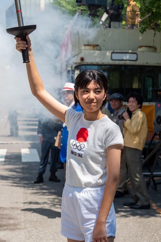 清田さんは「鈴木久美江」役について「走り高跳びの選手で、1964年東京オリンピックでは最後から2番目の聖火ランナーです。鈴木久美江さんに対して、どの言葉が似合うかとても迷いましたが、屈託のない前向きな方だと思います。私自身、実在する方を演じる事が初めてだったので、内面や走り方はもちろん、当時の鈴木久美江さんの髪型に近付けるため、10cmほど髪を切って撮影に挑みました。撮影前も撮影中も正解を求めてずっと悩んでいました」と、役作りにあたっての思いを明かした。