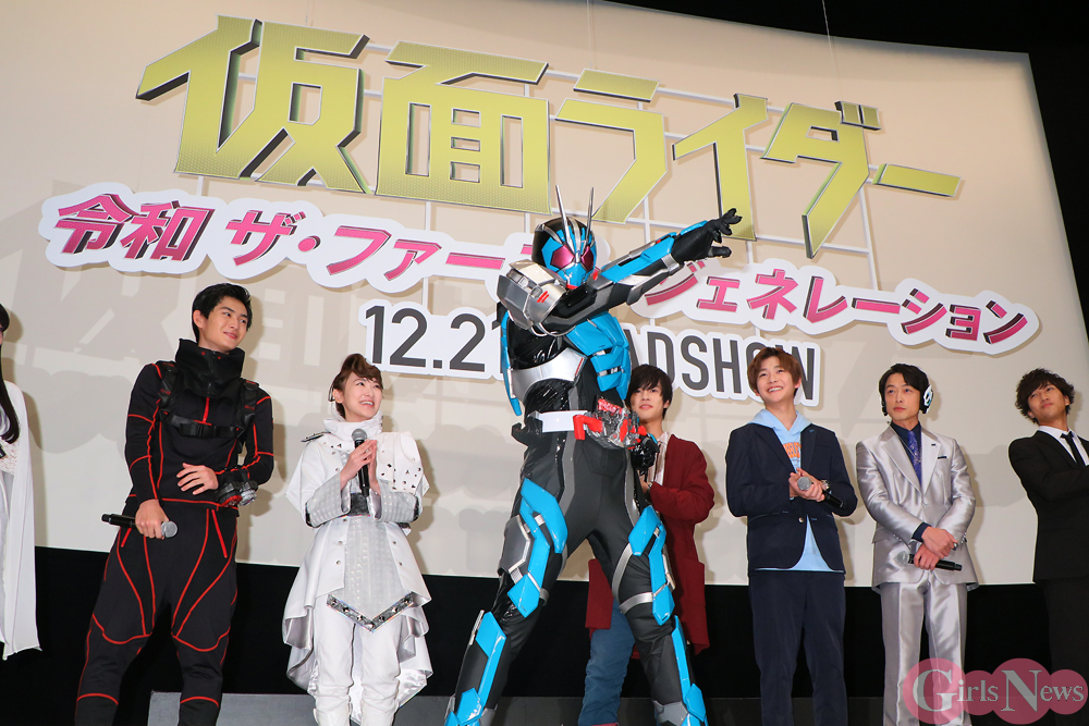 新時代に突入した仮面ライダーの令和第1作「仮面ライダーゼロワン」と、その歴史に幕を閉じたはずの「仮面ライダージオウ」。交わるはずのない二つの世界が並び立つとき、次なるステージの幕が開かれる。主役ライダー役の二人のほか、井桁弘恵が演じる「仮面ライダーバルキリー」や、大幡しえり演じる「仮面ライダーツクヨミ」の女性ライダーたちの活躍も気になるところだ。舞台挨拶にはほかに、岡田龍太郎、鶴嶋乃愛、押田岳、和田聰宏が一堂に会した。