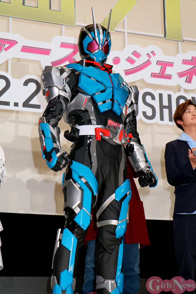 未来からやってきたタイムジャッカー“フィーニス”を演じる生駒さんは出演のオファーを受けて「純粋に嬉しかった。仮面ライダーが昔から好きだったんですけど、仮面ライダーオーズ/OOOの渡辺秀さんが地元の先輩で、いつか先輩みたいになりたいと思っていた。夢が叶ったんだな!と思って、鼻血が出そうになりました」と笑顔。さらに「地元の友だちからも知った途端にメールが来まして。仮面ライダーの力ってホントにすごいと思いました。中学生のときに友だちと変身ごっこをやっていたのを思い出して楽しい気持ちになりました」と振り返った。“フィーニス”を演じて「言いたかったセリフがたくさんあったので素直にお芝居しました。こんな豪華な衣装も作ってもらって、お金が大丈夫かな」と大満足な様子だった。