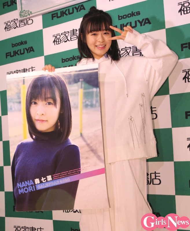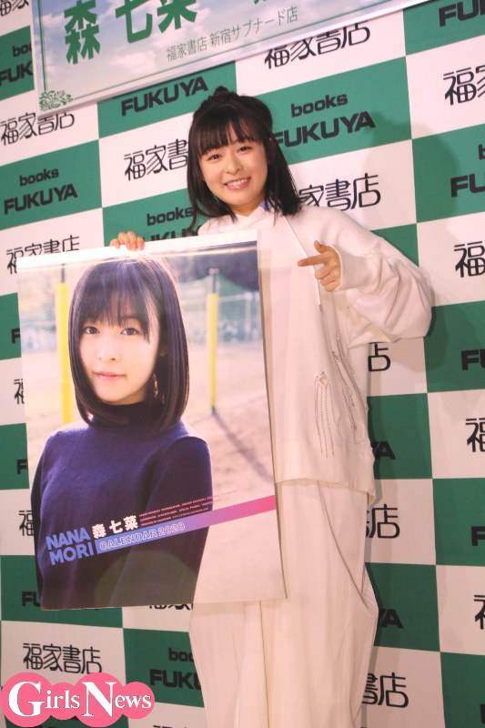 女優の森七菜さんが21日、福家書店新宿サブナード店で2020年版カレンダーの発売記念イベントを開催。個人の作品での記者会見はこの日が初めての彼女、カメラの多さに驚きつつ「でも楽しいです」と初々しい様子を見せた。