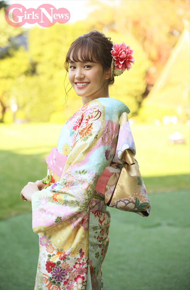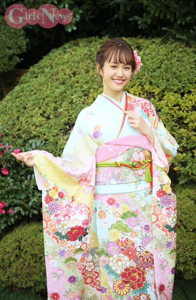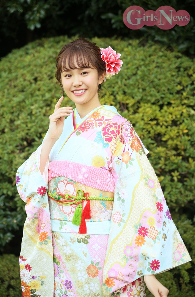 「参加するのは今年が初めてなんですけれども、着物を着ること自体が七五三ぶりだと思うので、すごく嬉しい気持ちでいっぱいです。着物もとても気に入っていて、ベースは淡い水色ですが帯がピンク色なのがポイントで、リュウソウピンクをやらせていただいたので、縁があるなと嬉しくなりました」