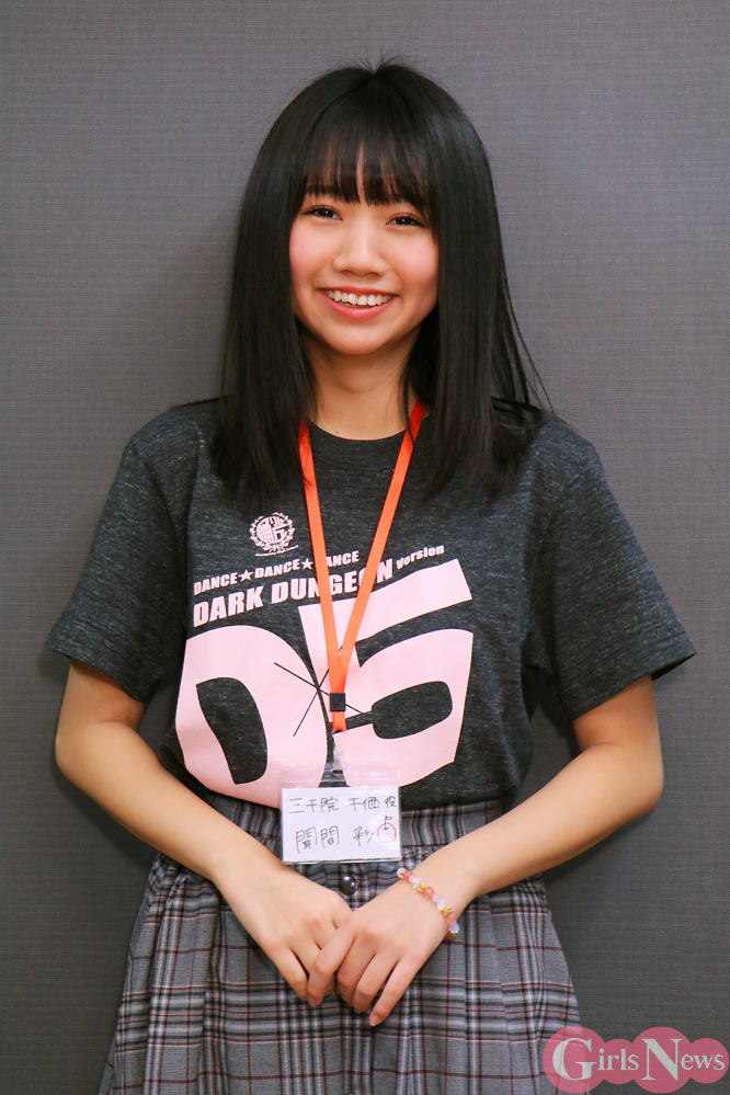 三千院千価 役の聞間彩さんは「役柄も本人も個性が強すぎて。稽古中は台本にないセリフが飛び出して混乱しますけど、楽しんでやっています」と笑顔だった。