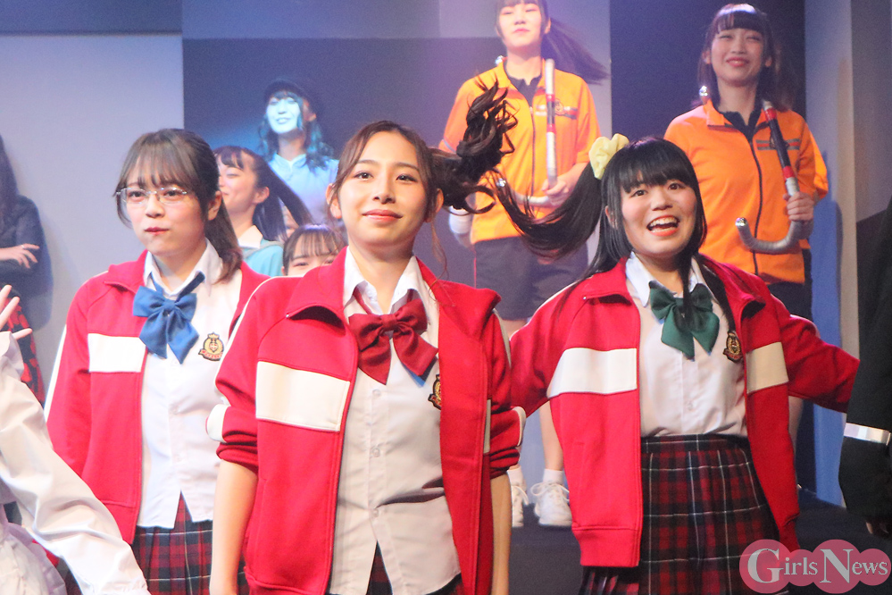 校長・須磨勝子役の新木美優さんは「全14曲を振付しました。私が作り出したものをみんなに踊って頂いて、それをお客さんにお届けしてどんな反応いただけるか、すごく緊張しております」とそれぞれ語った。