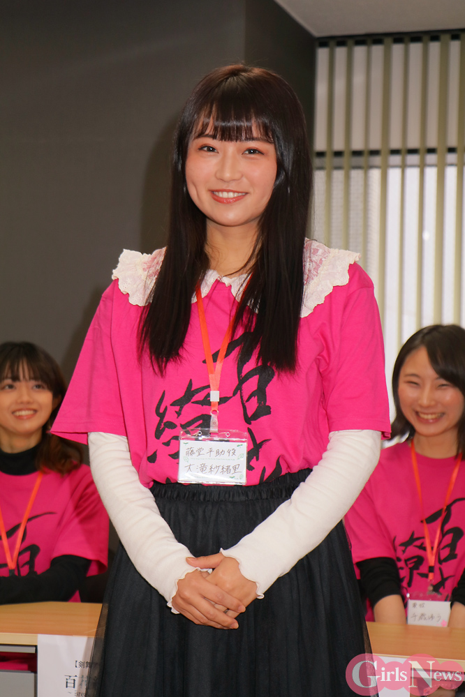「私が演じる新選組の斎藤一は多くを語らない役なので、刀でシュッシュっと切ったらスッとサヤにしまうようなクールでミステリアスな斎藤一をカッコよくできるように、本番までに何百回もシュッシュっと練習して頑張りたいと思います」