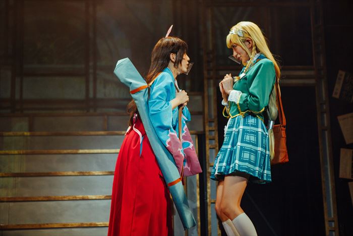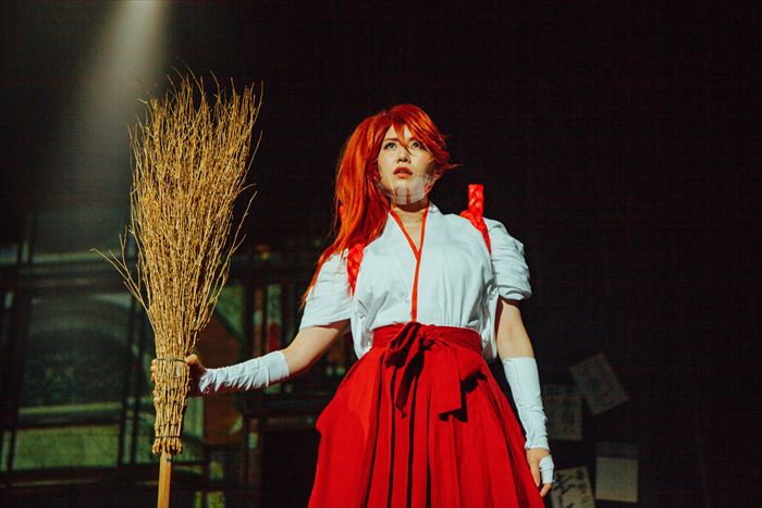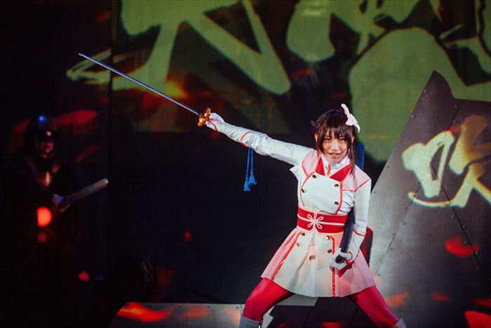 主役に抜擢された関根さんは、3月に予定されながらコロナ禍の影響により延期となっていた公演がようやく初日を迎えて、「やっとこの景色が見られるんだと涙が溢れました」と熱い想いを明かす。天宮さくらが持つ、明るく前向き、向こう見ずで負けず嫌いなキャラクターを熱演。特に殺陣のシーンの剣さばきのカッコよさが際立っていた。