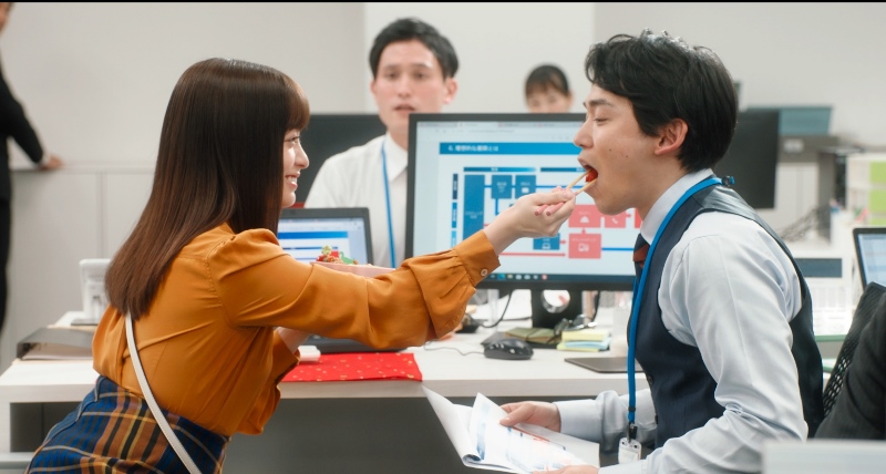 テレビCM「放置少女 ずっと一緒篇」では、タイトル通りに、橋本さんが恋人の 1 日に“ずっと一緒に”寄り添っている様子が映し出されている。クライアントとの商談や、お昼休み、大事なプレゼンまで、恋人を四六時中応援する橋本さんの健気な姿が見どころとなっている。