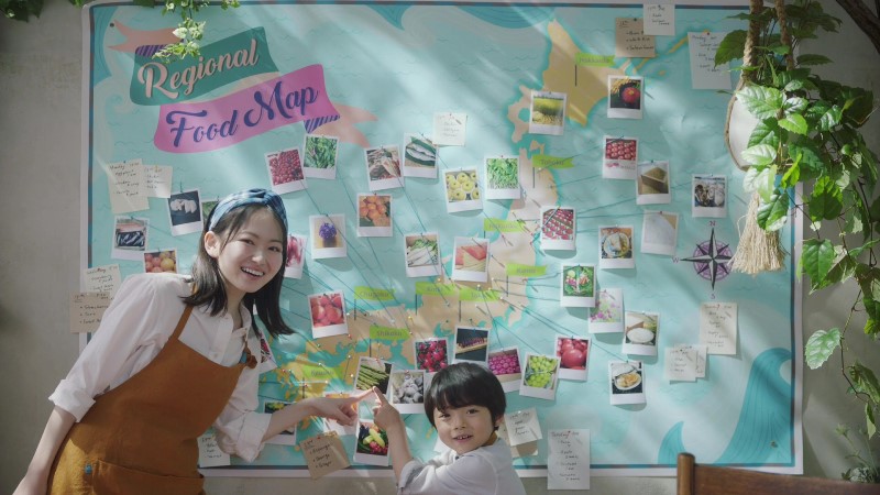 まるで旅をするかのように、 日本全国の食材に出会える産直アウル。 その化身として、 山田さん扮する「アウルさん」と、 助手の男の子がさまざまな地方の食材を紹介していく。アウルさんがいるのは、 大きな日本地図を背景にした、 まるで秘密基地のような空間。 産直アウルが、 生産者と直接つながるサービスであることを表現している。