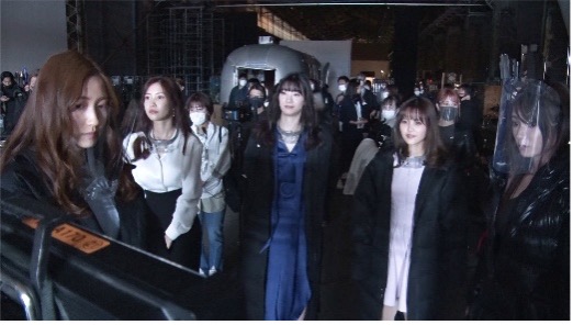 唯一全員が共演する、横一列で歩くシーンでは、全員が同じ事務所ということもあり、撮影の合間は和気あいあいとした雰囲気で進んだ。回数を追うごとに、5人の足並みがしっかり揃い、撮影は無事終了。5名それぞれの個性が輝く、素敵な撮影となった。
