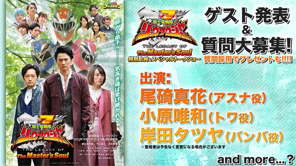 『騎士竜戦隊リュウソウジャー』からスピンオフした完全新作の特別上映&スペシャルトークショーが、シアターGロッソにて11月3日(水・祝)に開催されることが決定し、尾碕真花(アスナ役)、小原唯和(トワ役)、岸田タツヤ(バンバ役)がゲストとして出演することが発表された。