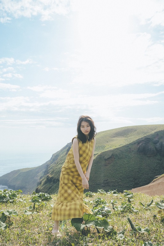 撮影が行われたのは、雄大な自然が広がる北海道・道東エリア。果てしなく続く断崖の海岸線、波紋ひとつない静かな池……北の大地の澄んだ空気の中、透明感いっぱいの白い素肌や神秘的な美しい瞳が目を引く。
